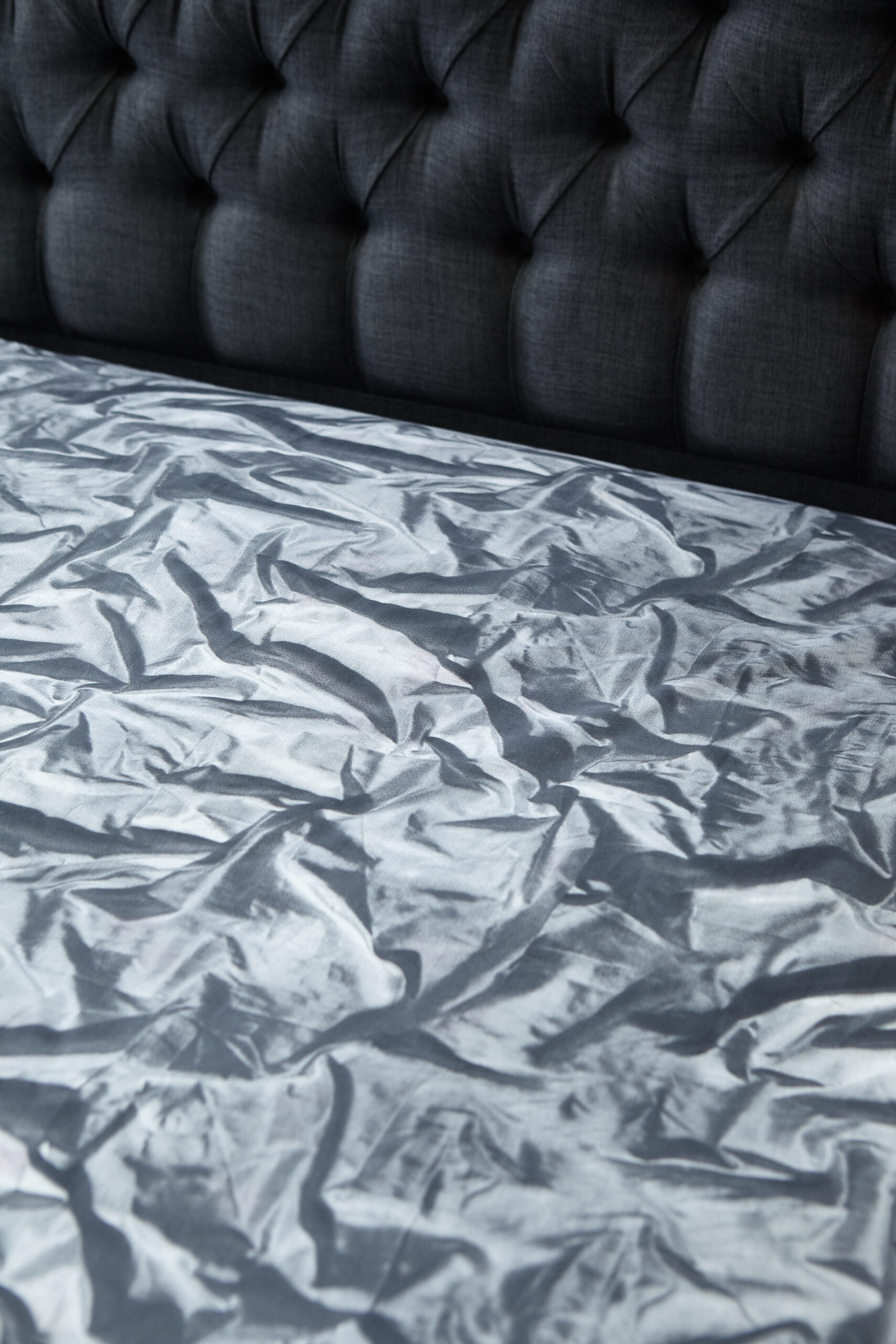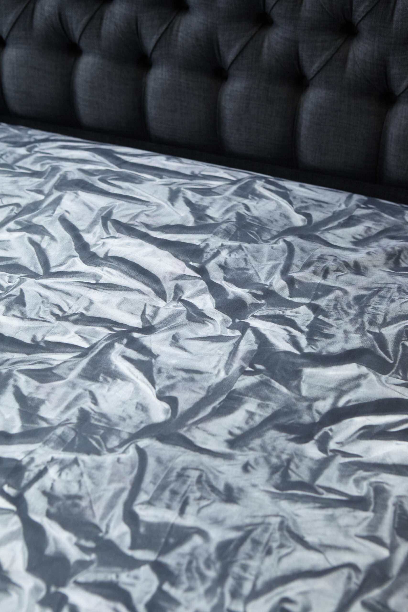 This playful ‘Crumpled Satin’ print features artfully crumpled and creased satin fabric photo realistically printed onto 100% Egyptian cotton.